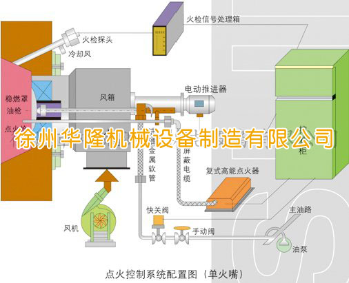 本系統(tǒng)由就地點(diǎn)火控制柜(SKDK)、高能點(diǎn)火裝置、火焰檢測(cè)裝置、油燃燒器推進(jìn)執(zhí)行器和球閥組成。點(diǎn)火柜按用戶要求可以采用繼電器或可編程控制器PLC為核心。系統(tǒng)可自動(dòng)(接受集控室指令)或手動(dòng)(現(xiàn)場(chǎng)就地)控制。點(diǎn)火設(shè)備按有關(guān)規(guī)范及設(shè)定程序進(jìn)行鍋爐的點(diǎn)火操作,并給出各種工況的就在顯示和對(duì)集控室的信號(hào)反饋。